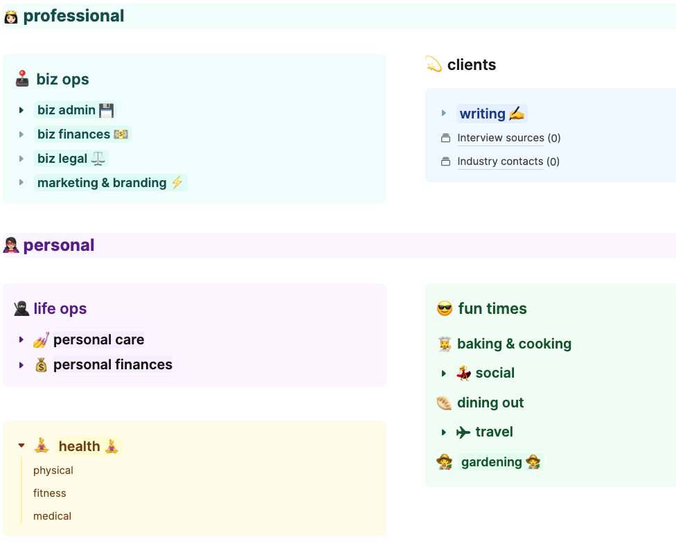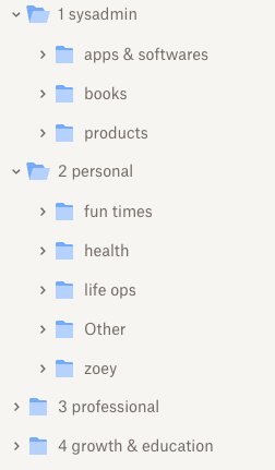 The chances are high that, whatever and however you organize things, you have preferences, even if you don’t know them yet. I’m a visual person, so color coding and emoji assigning work well for me. I didn’t like how the Johnny Decimal system had numbers that took up precious space at the beginning of a folder name. I had mapped, created new folders, and renamed so many things until I realized the upkeep would be awful for me. Then, I had to rename them again. What I did keep were single numbers (1-4) so I could sort in my systems.
