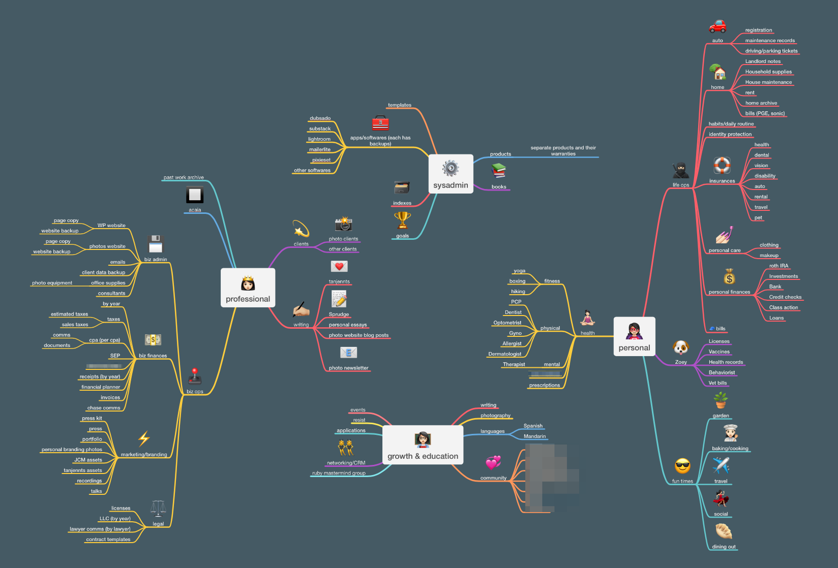 What worked: researching and pulling out the best of each, dumping all of my projects and areas of focus, color coding, emojis, indexes, and keeping it the same between apps.