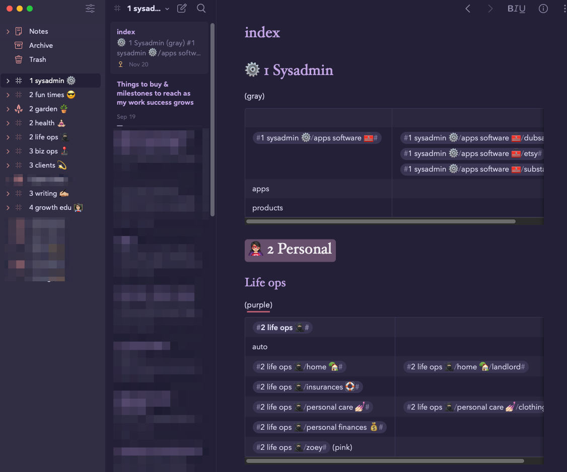 The filing system at work in Bear, Capacities, and Dropbox. I have some stuff to still fix, but these indexes and naming patterns have been super helpful!