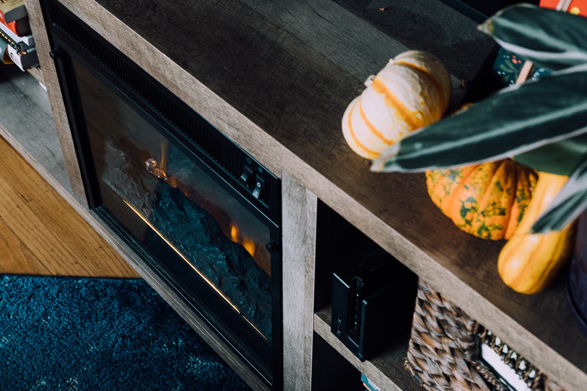 Fall decorative gourd season (yes, I know it’s winter now) and a fireplace.