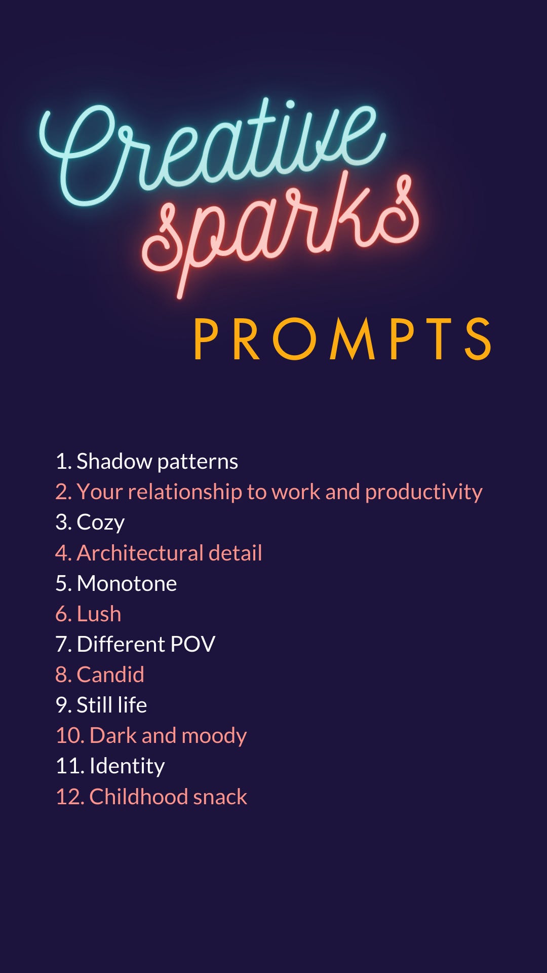 Prompts will be emailed out to participants on Sundays. You can preview the prompt topics in the section above.